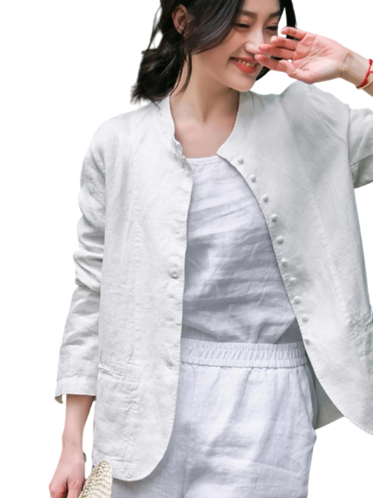 Pure Harmony, Linen Buttoned Jacket & Trousers Set